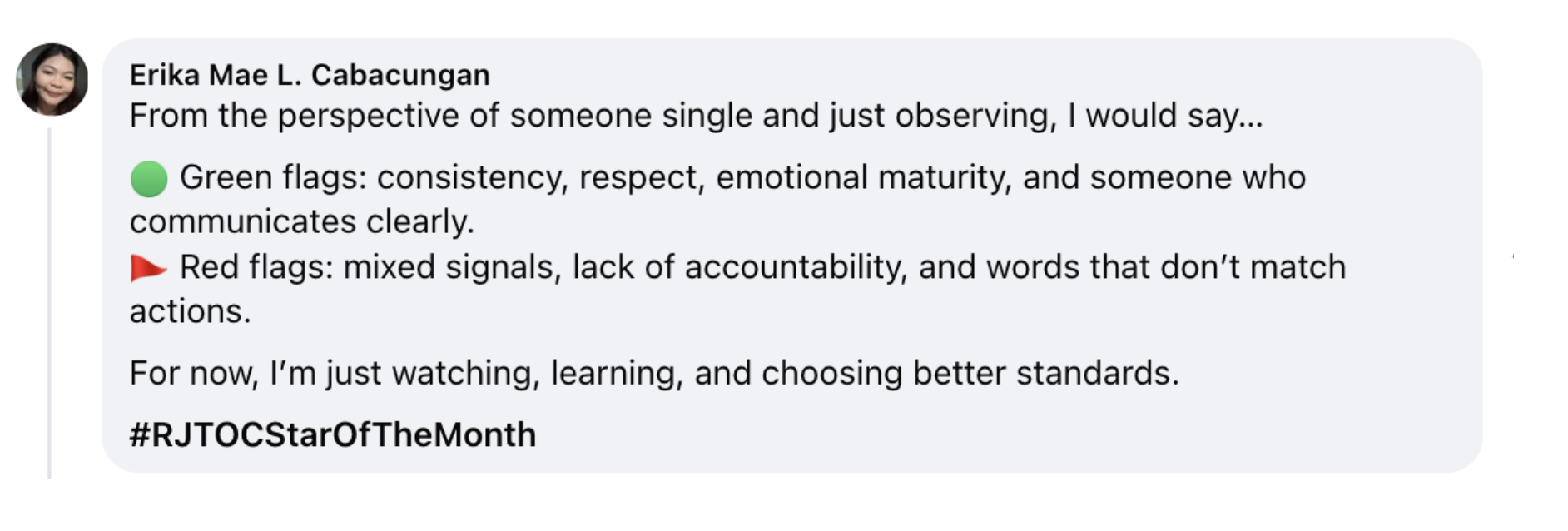 Green Flag: Mentally stimulating, funny, and adaptable. Never boring.